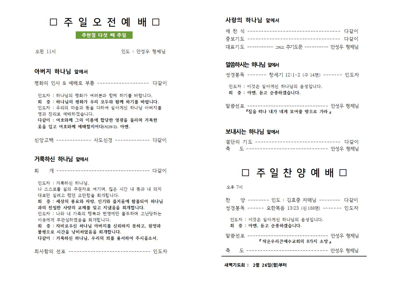 | 2월 25일 (사순절 둘째 주일) 주보 (0) | 2024.02.24 |