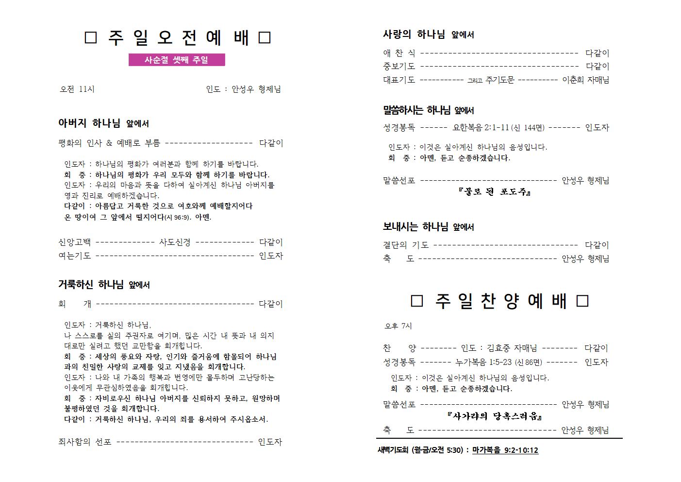 | 3월 17일 (사순절 다섯 째 주일) 주보 (0) | 2024.03.17 |