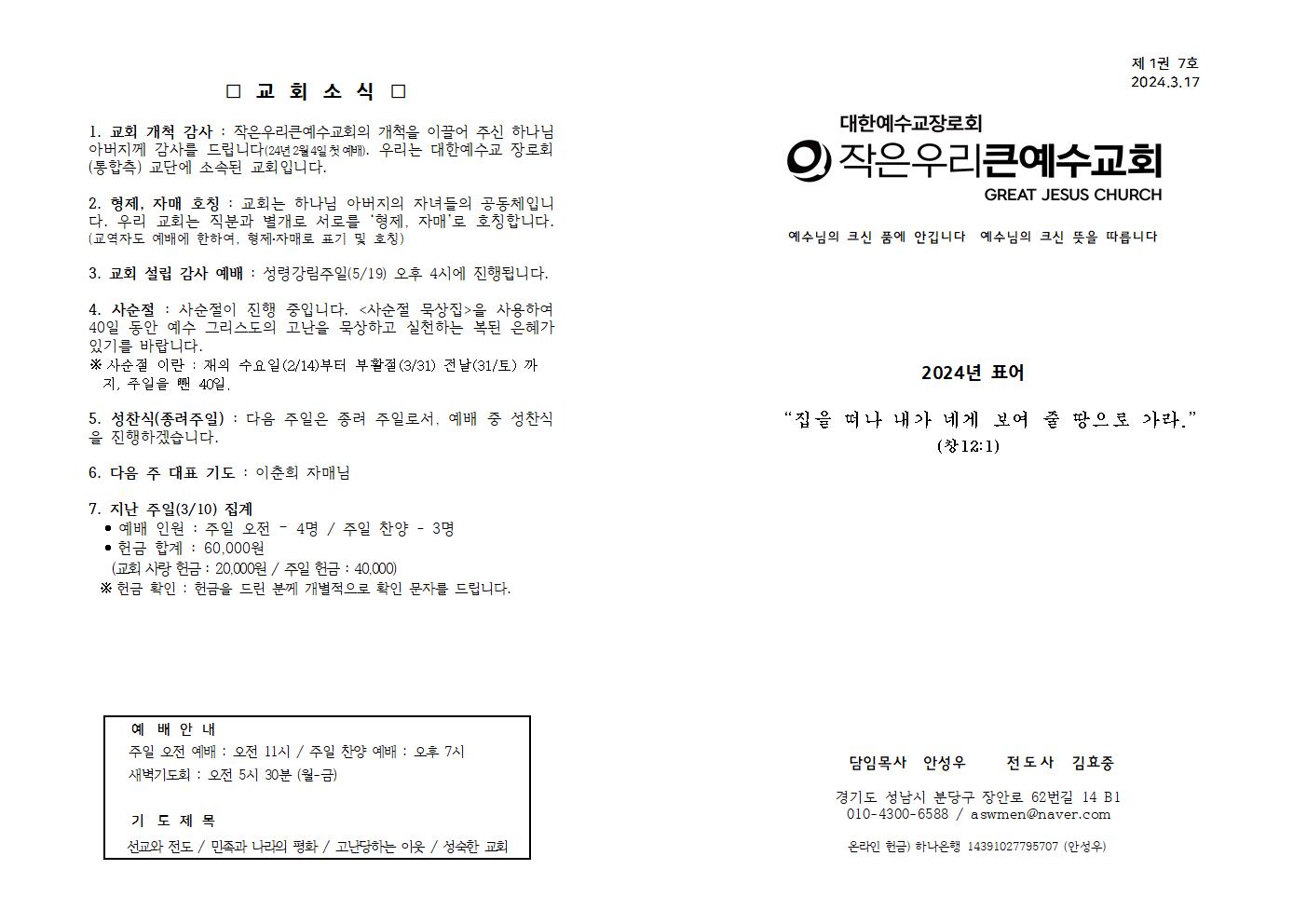 | 3월 3일 (사순절 셋째 주일) 주보 (0) | 2024.03.02 |