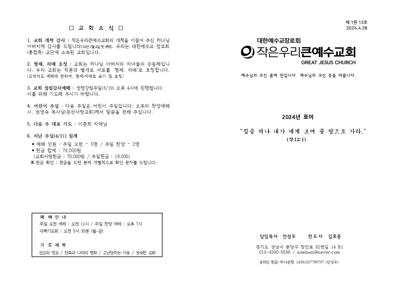 | 5월 5일 (어린이 주일) 주보 (1) | 2024.05.05 |