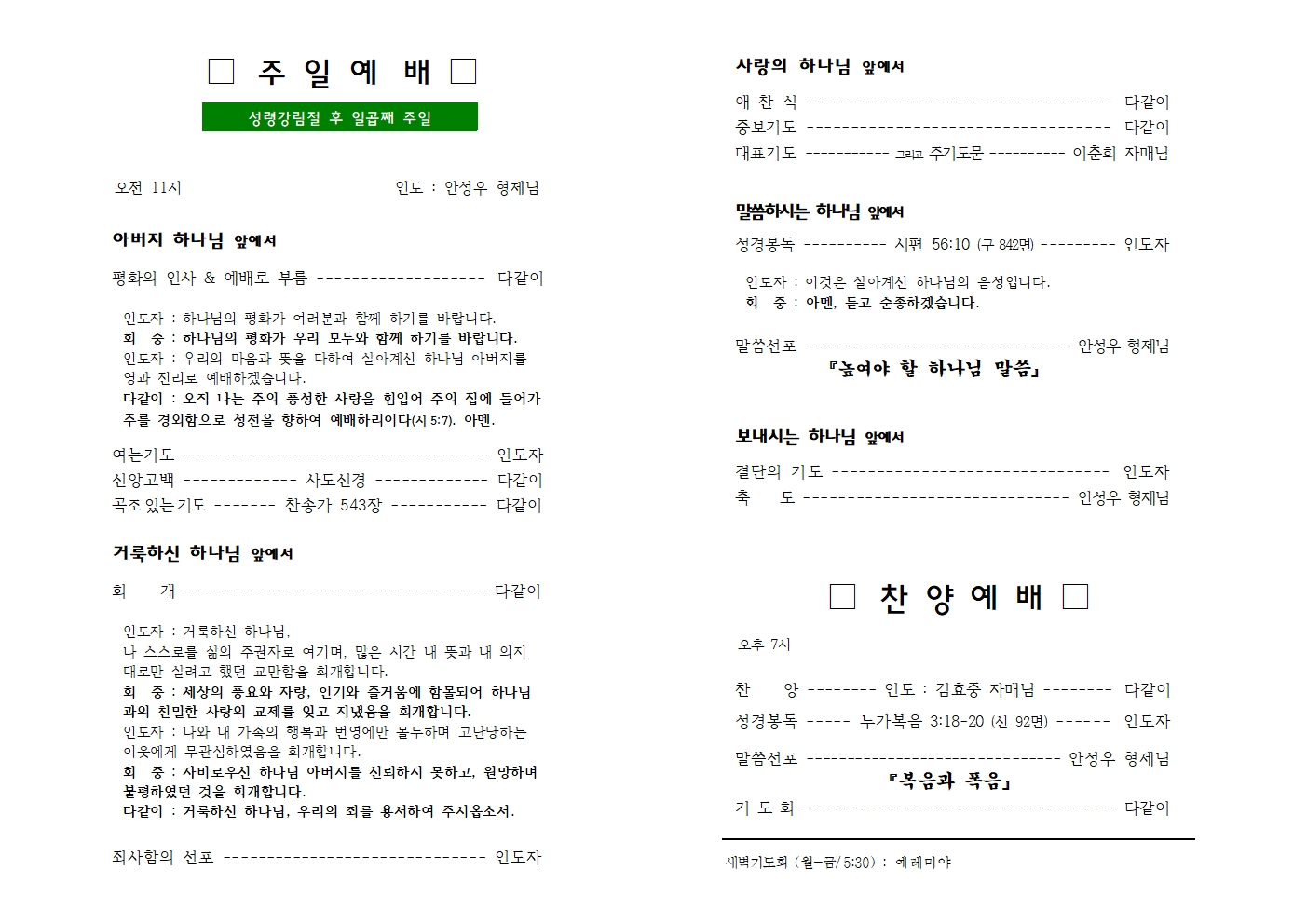 | 7월 21일 (성령강림절 후 아홉 째 주일) 주보 (0) | 2024.07.21 |