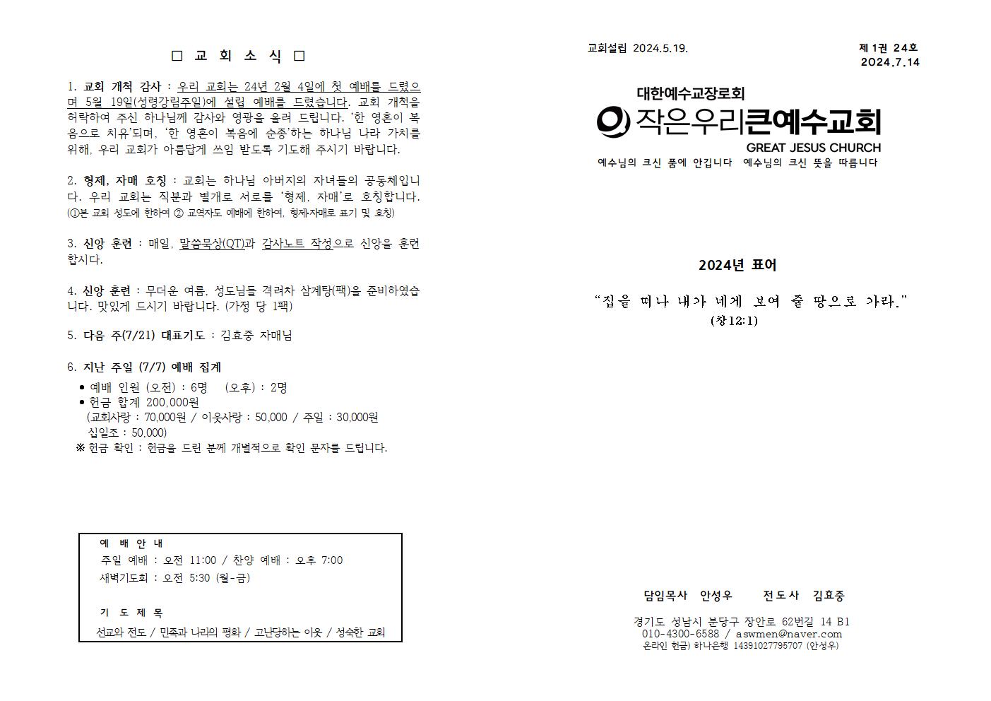 | 7월 7일 (성령강림절 후 일곱 째 주일) 주보 (0) | 2024.07.07 |
