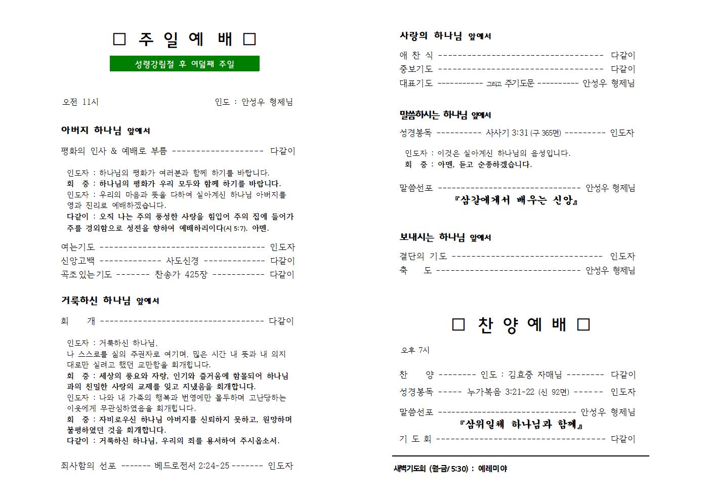 | 6월 30일 (성령강림절 후 여섯 째 주일) 주보 (0) | 2024.06.30 |