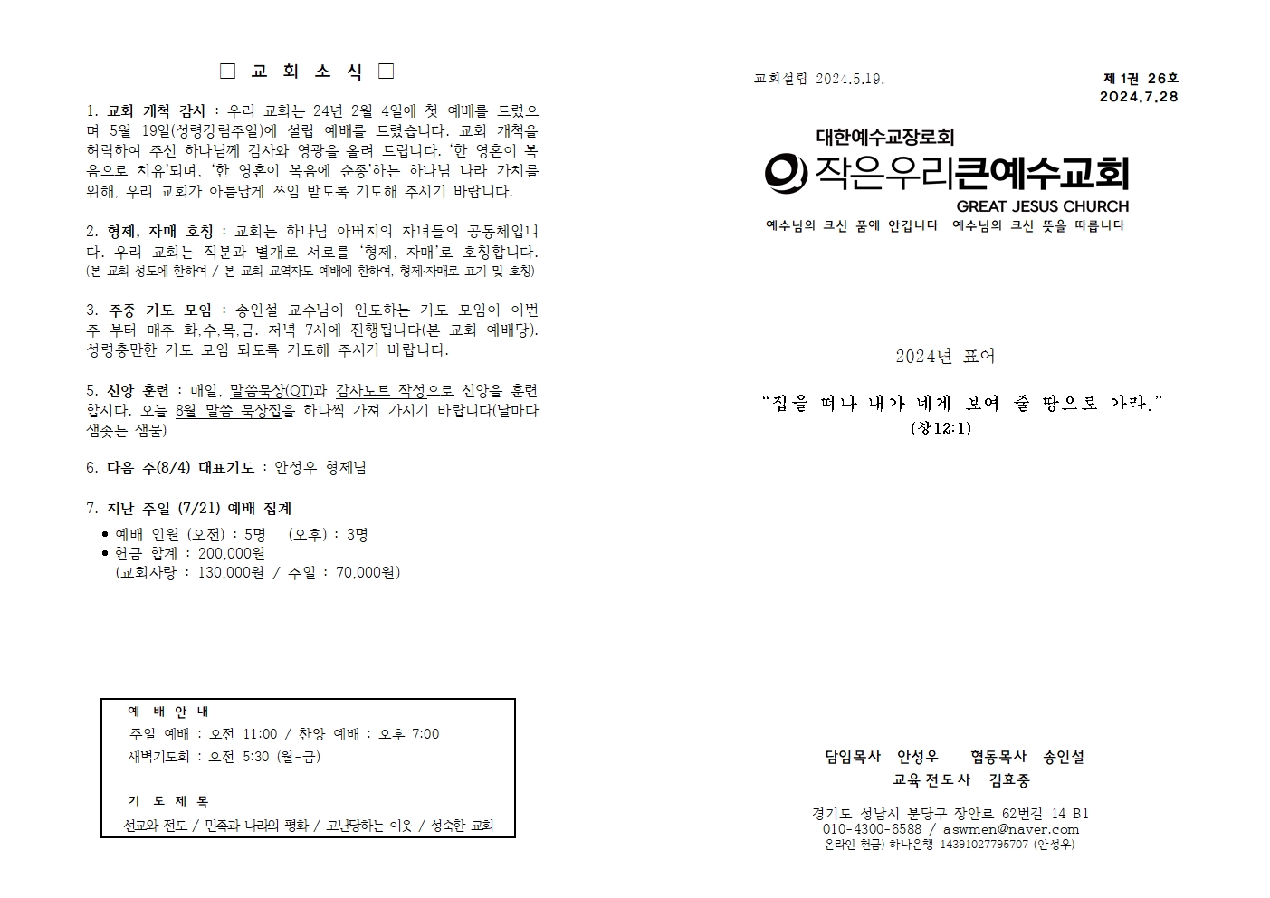| 8월 11일 (성령강림절 후 열둘 째 주일) 주보 (0) | 2024.08.10 |