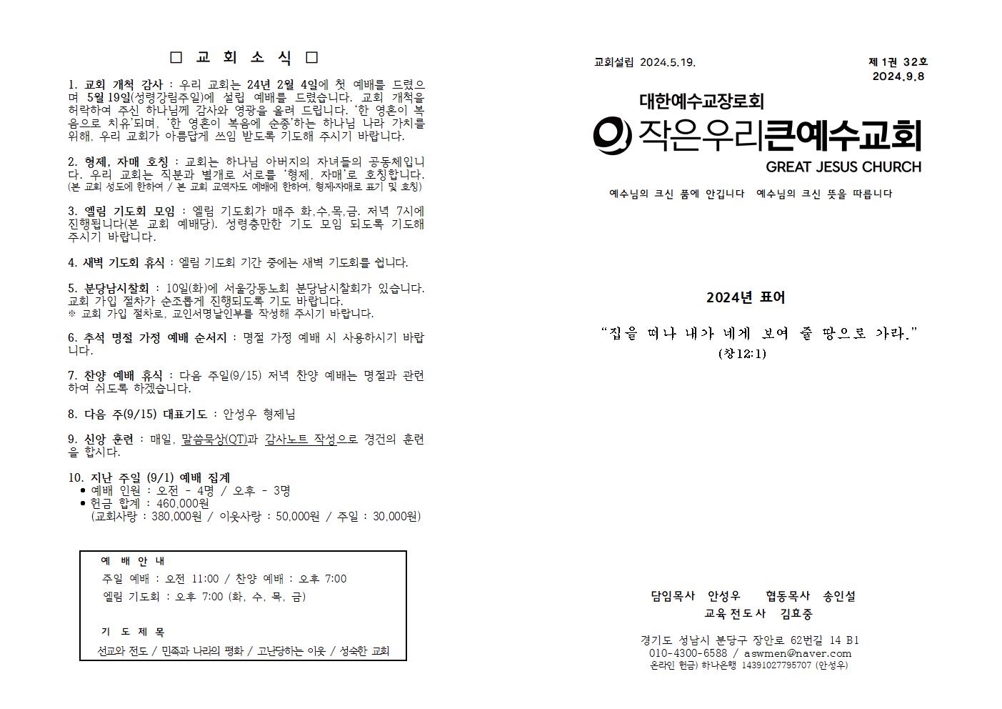 | 9월 1일 (성령강림절 후 열다섯 째 주일) 주보 (0) | 2024.09.01 |