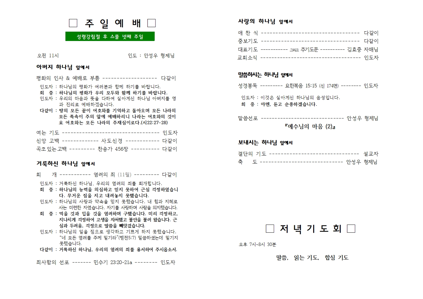| 10월 13일 (성령강림절 후 스물 한 째 주일) 주보 (0) | 2024.10.13 |