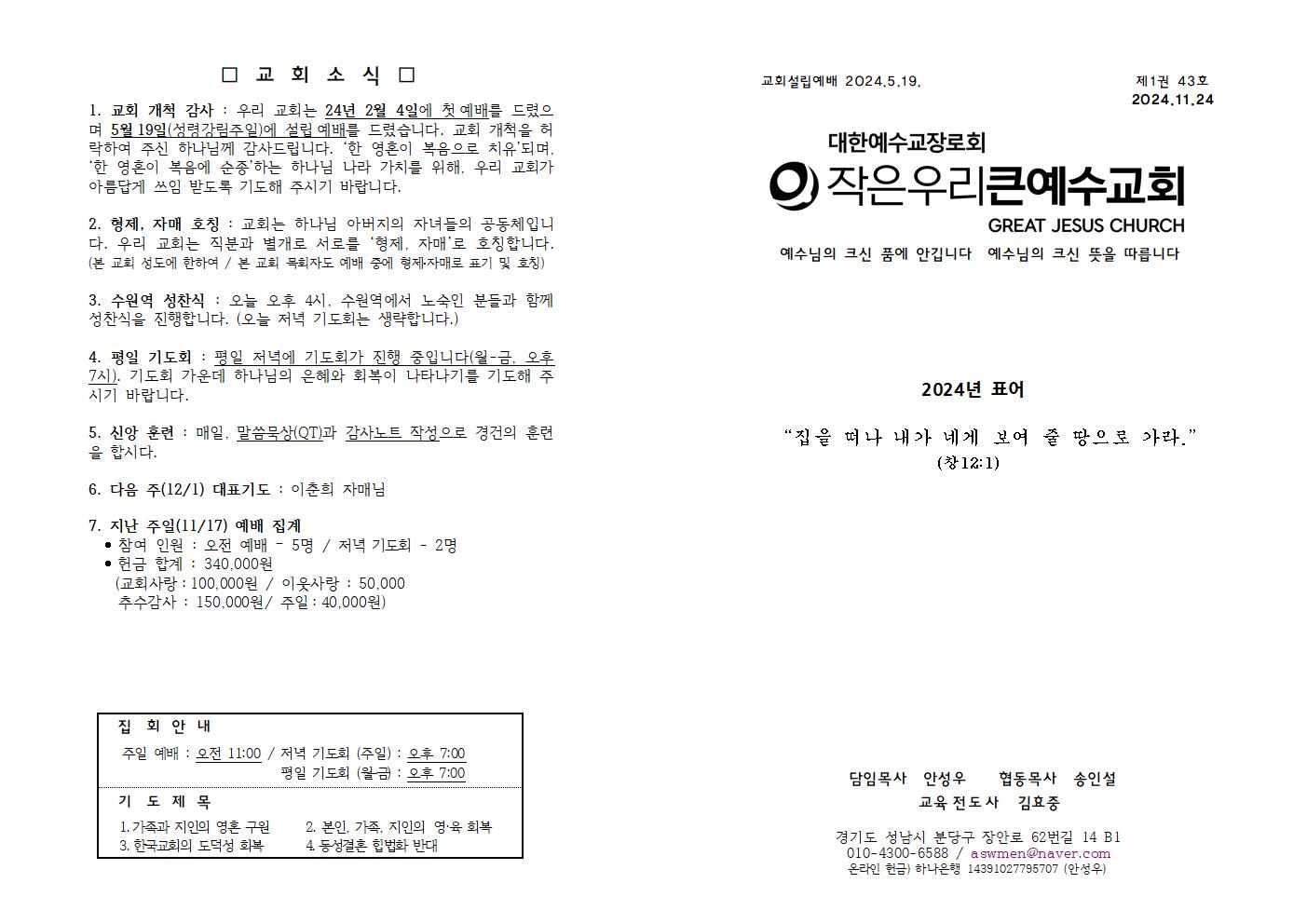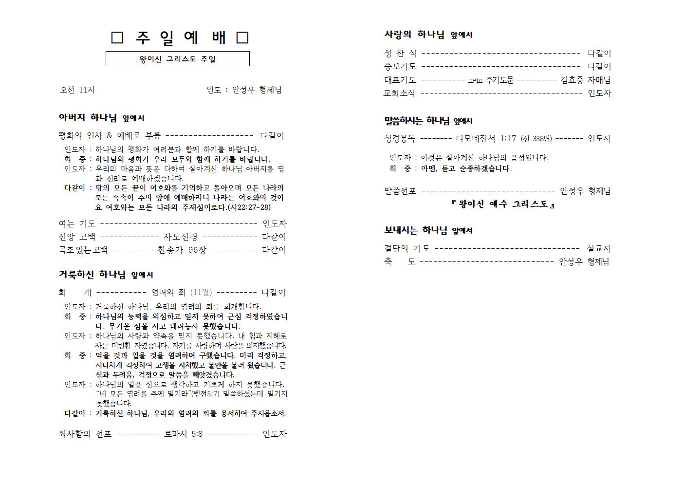 | 11월 3일 (성령강림절 후 스물 넷 째 주일) 주보 (0) | 2024.11.03 |