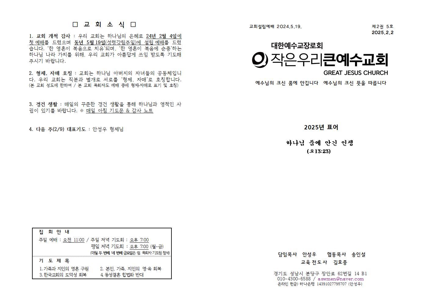 2월 9일 (주현절 후 다섯째 주일) 주보 (0) | 2025.02.10 |