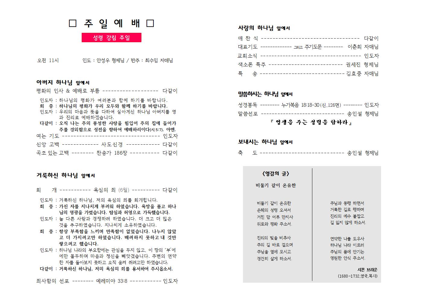 | 6월 22일 (성령강림절 후 둘째 주일) 주보 (0) | 2025.06.22 |