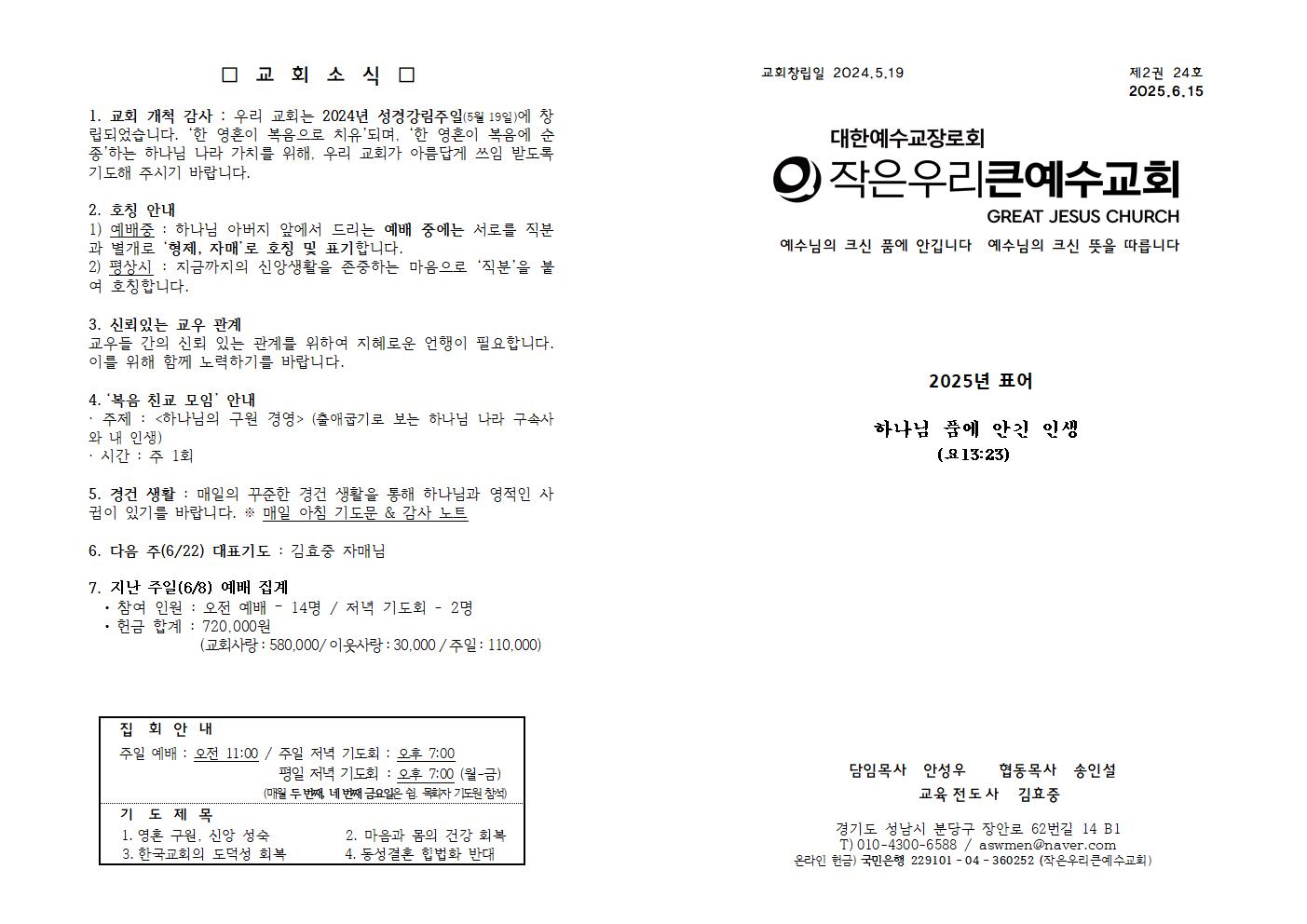 | 6월 29일 (성령강림절 후 셋째 주일) 주보 (0) | 2025.06.29 |