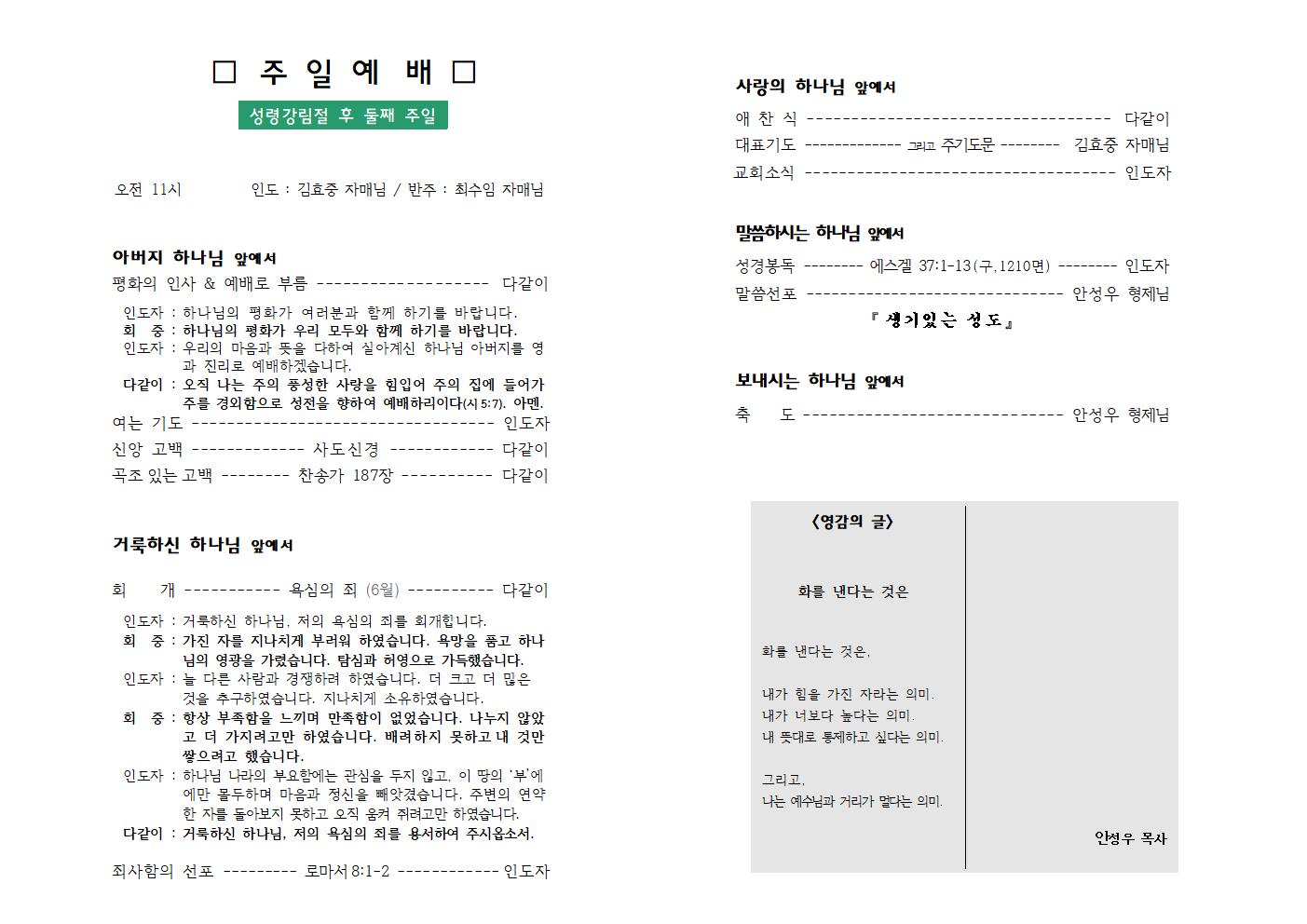 6월 22일 (성령강림절 후 둘째 주일) 주보