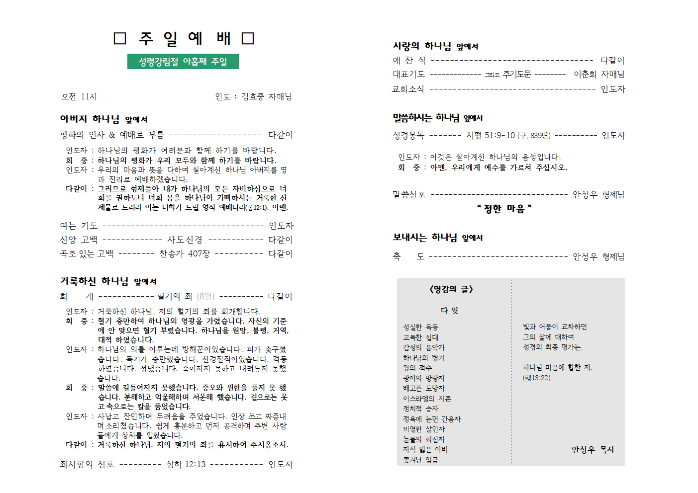 | 8월 3일 (성령강림절 후 여덟째 주일) 주보 (0) | 2025.08.03 |