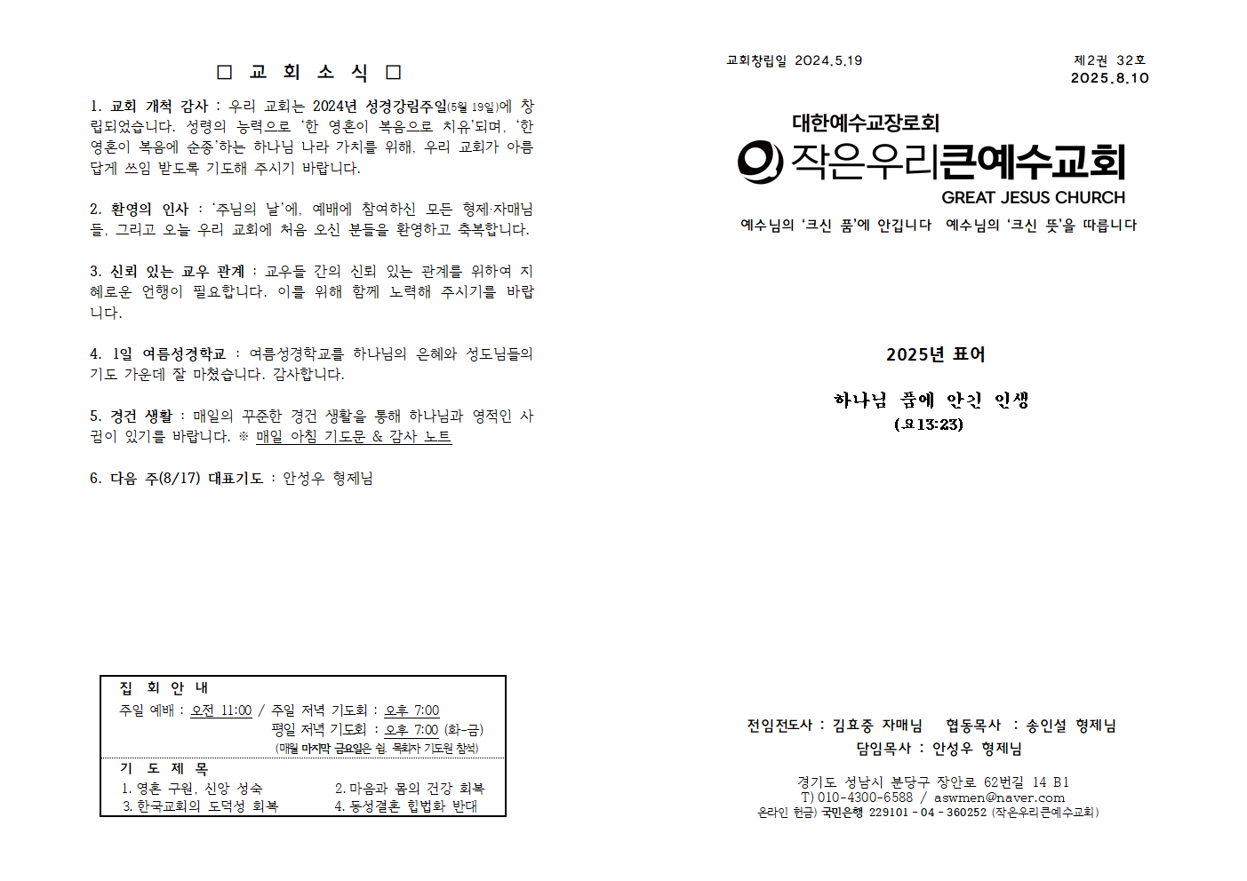 | 8월 24일 (성령강림절 후 열한째 주일) 주보 (0) | 2025.08.24 |