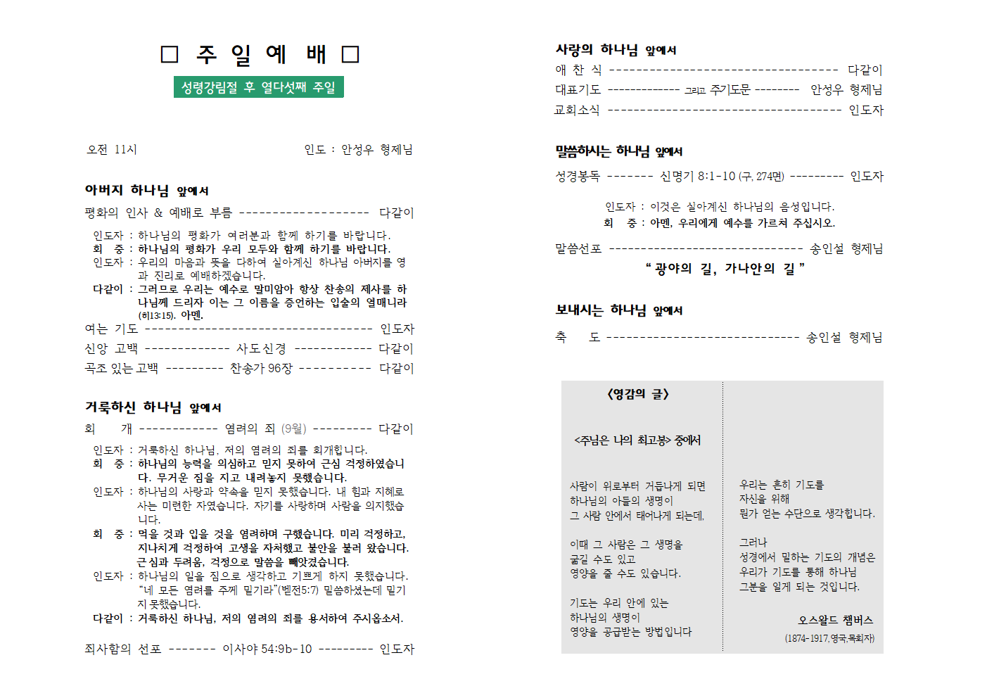 | 9월 7일 (성령강림절 후 열셋째 주일) 주보 (0) | 2025.09.07 |