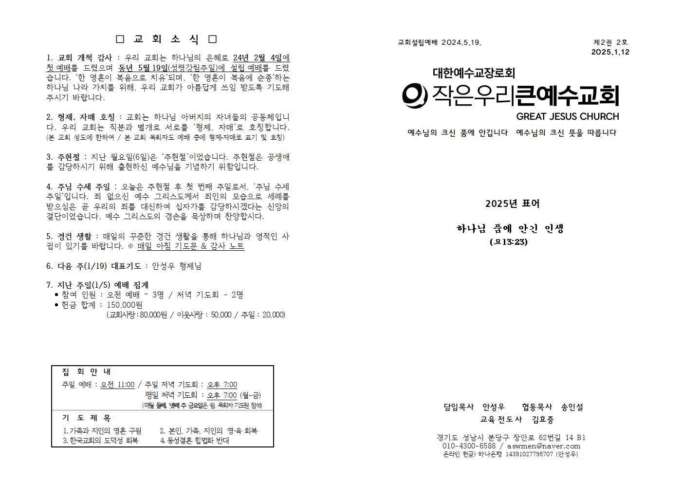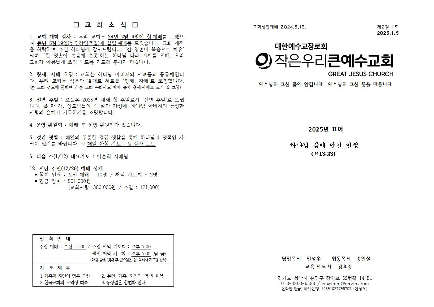 1월 5일 (신년 주일) 주보
