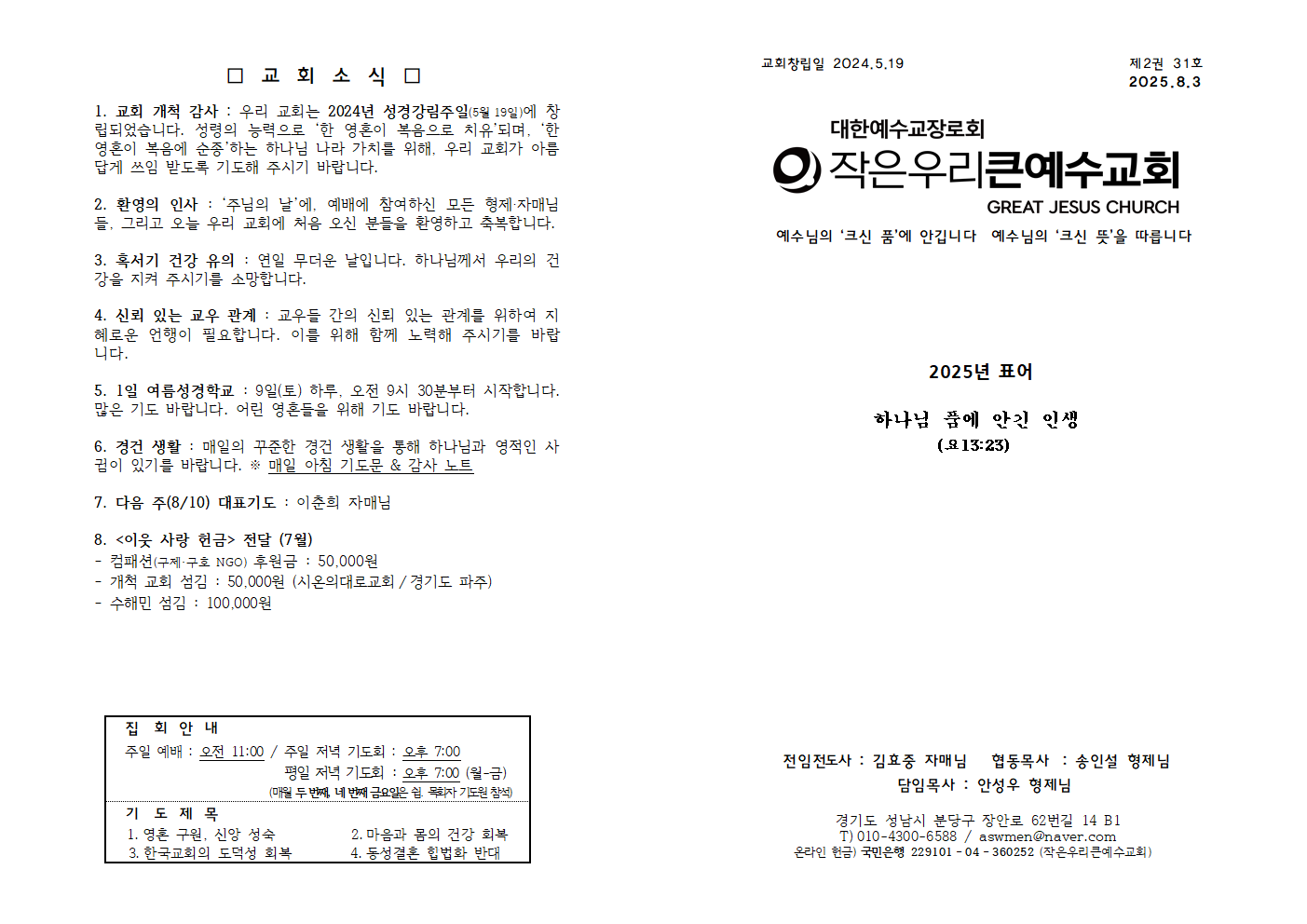 교회 소식/알림 2025.07.31